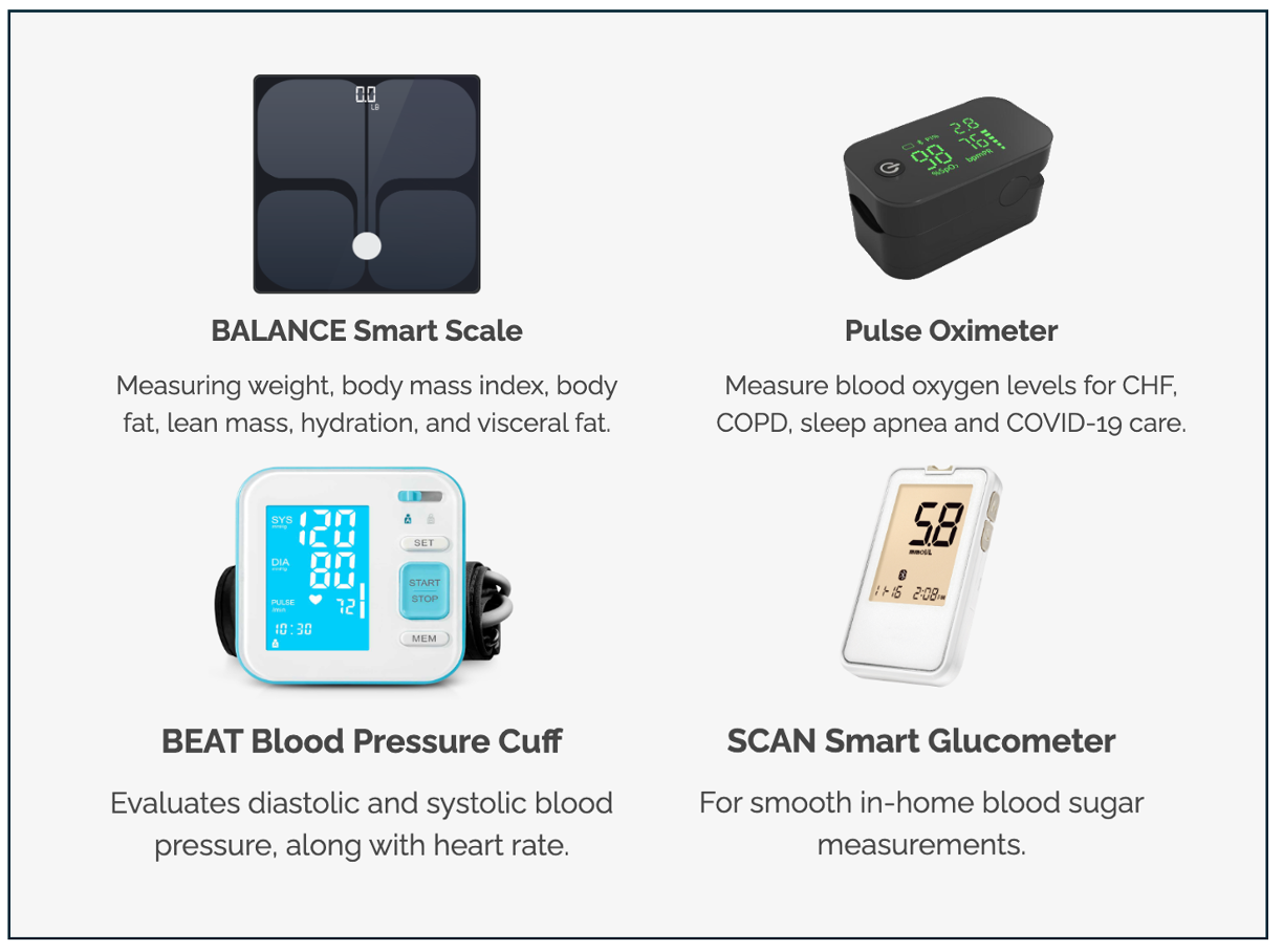 - BEAT Blood Pressure Cuff, BALANCE Smart Scale, SCAN Smart Glucometer